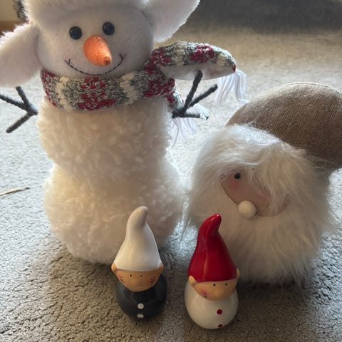 En artig og dekorativ lyslykt med "snø". Batteridrevet. Selges for kr 100 pluss fraktkostnad