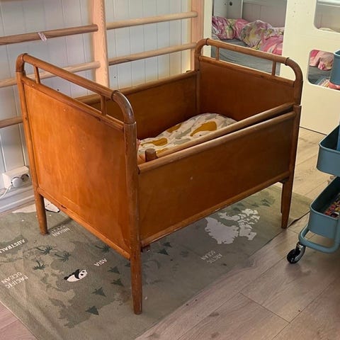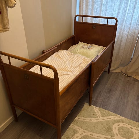Gammel uttrekkbar barneseng til salgs