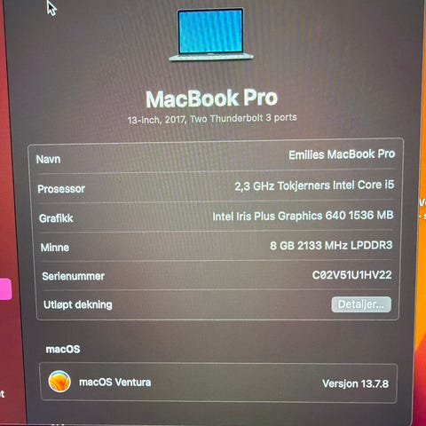 Modellen kjører macOS Big Sur versjon 11.7.10.