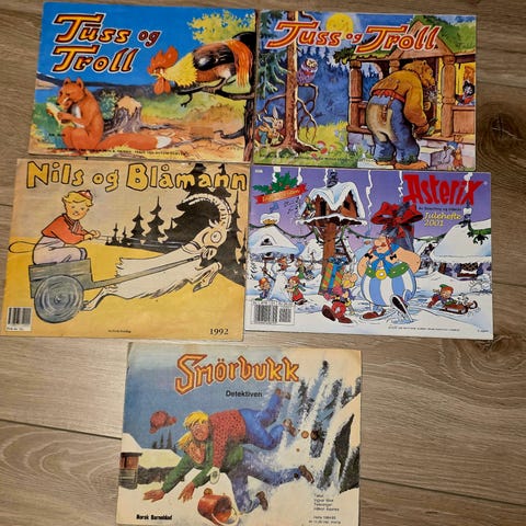 Selger følgende tegneserier: Asterix julen 2020. Vangsgutane julen 1988. Smørbukk 1981/1982, 2012, 2016. Hårek julen 2004, Tom og Jerry 2020, Tuss og Troll julen 2003.