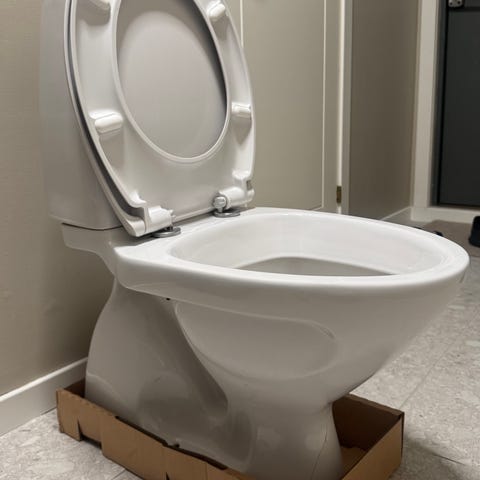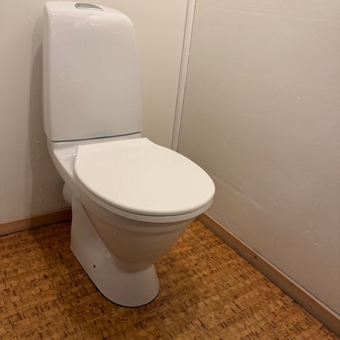 Toalett med sete i hvit farge. Produktet inkluderer både toalettbolle og sete. Egnet for baderom.
