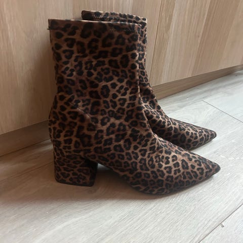 Varp! Perfekte kule Leopard Bumper Boots 38. Jeg er 38,5 og de passer perfekt. Disse varer mange år! Siste par hadde jeg i 5. fremstår ubrukt. Kuskinn. Italiensk Design. Prisen er satt. Nypris 5,400,- Boks følger med.