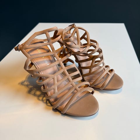 Nydelige sandaletter. Brukt to ganger. Hælhøyde 7 cm. Nude.