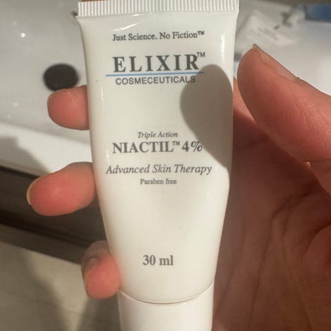 Elixir Niactil 4% hudpleieprodukt med 100 ml innhold. Produktet er utviklet for avansert hudbehandling og inneholder en 4% konsentrasjon av aktiv ingrediens.
