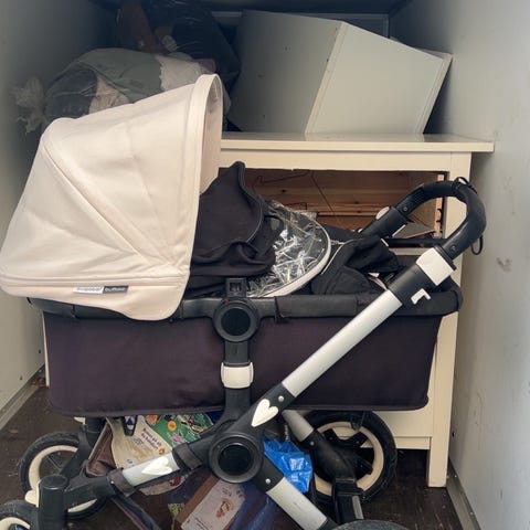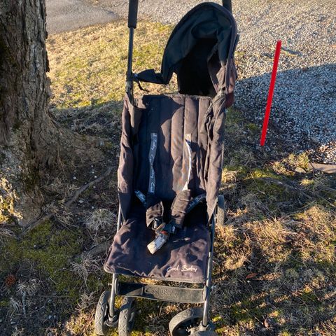 Bugaboo Buffalo barnevogn i brun farge med justerbart håndtak og solskjerm. Vognen har fire hjul med god demping og en romslig kurv under setet for oppbevaring. Setet har sikkerhetssele og avtakbar frontbøyle. Dette er en fantastisk barnevogn og den fungerer helt utmerket! Den har normal bruksslitasje og endel solbleking på solskjermen og foran på underdelen. Hjulene er fleksible og forhjulene kan låses i fast posisjon. Den er lett å folde sammen og tar forholdsvis liten plass. Vi klarte oss fint med en e-golf på tur :).