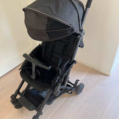 Liggedel følger selvsagt med, samt original pose til sittedelen, koppholder, insektsnett og refleks.