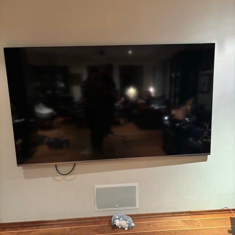 Høyttaleren i TV er dessverre sprengt. Dvs. Man får lyd, men hører ganske fort at det skurrer litt. Fikses enkelt med ekstra høyttaler eller lydplanke.