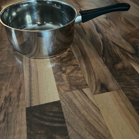 Kjelesett. To kjeler og en stekepanne. Alle med lokk. Tynne og lette i aluminium. Passer ikke på induksjon.