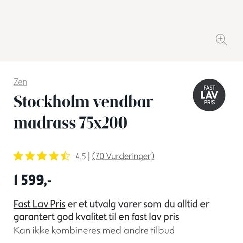 https://www.skeidar.no/alle-produkter/alle-senger-og-madrasser/vendbare-madrasser/m1-vendbar-madrass/ Ny pris 4499,-