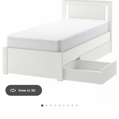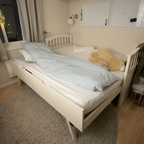 Lenke til seng: https://www.ikea.com/no/no/p/flekke-dagseng-med-2-skuffer-hvit-00320134/