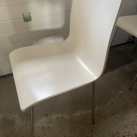 Selger denne fine og praktiske spisegruppen. Stolene er sorte, med bord som har sorte bein og lys bordplate