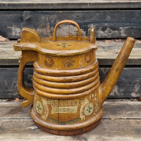 Nydelig håndskåret pokal/ krus med lokk. Trolig bjørk. Flott håndtverk.