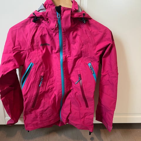 Kjempegod rosa, regntett skalljakke fra Bergans, godt ivaretatt uten bruksmerker.