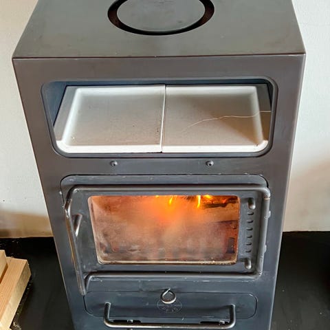 Handøl peisovn i svart stål med glassdør. Egnet for oppvarming av bolig med vedfyring. Har moderne design med stor glassflate for god innsyn til flammene.