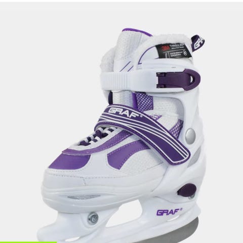 Graf Andre skøyter i justerbar størrelse 31-34 for barn. Skøytene har hvit og lilla farge.