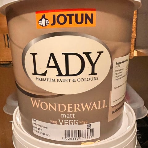 Supermatt veggmaling av ypperste kvalitet, i den lekre gultonen Cheerful Peach fra Jotun Lady.