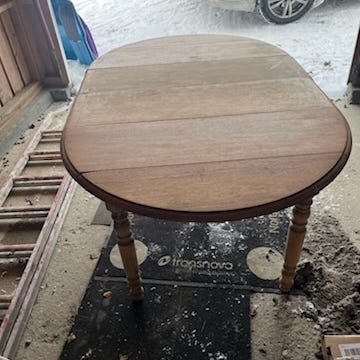 Fin patina etter 20 års bruk ca. Ingen store skader eller hakk. Se bilder. Opprinnelig trehvitt, men satt inn med pigmentert olje eller beis for noen år siden. Sannsynligvis fra IKEA.
