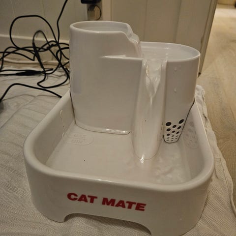 Elektrisk drikkefontene til katt. Kun prøvd noen dager. Følger med kvittering for garanti/reklamasjon.