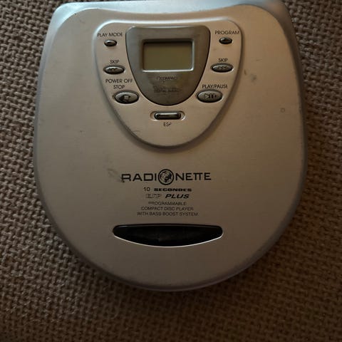 Grundig CD-spiller. Inkluderer bæreveske, lader og hodetelefoner. Flere år gammel, men lite og pent brukt. Fungerer som den skal.