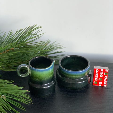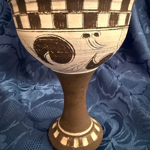 Arol keramikk vase med dekorative mønstre. Vasen har en unik form og et rustikt utseende med grønne og grå toner. Passer til dekorasjon i hjemmet.