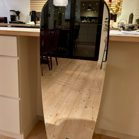 Bolia veggspeil med ramme, egnet for montering på vegg i høyde /lengde eller gulvstående inntil vegg.