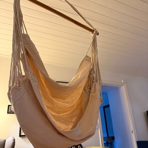 Selger denne lekre hengestolen fra Broste Copenhagen i rotting. Kan henge både ute og inne. Hel og pen, med unntak av et feste. Se bilde. Ikke i veien for bruk. Kjetting og grisehalekrok for oppheng kan medfølge. Nypris 5499,-