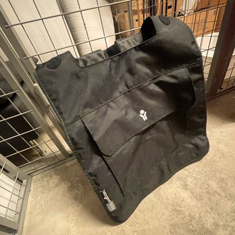 Når transportvesken ikke er i bruk kan den rulles sammen til en flat, kompakt pakke. Stor lomme foran på vesken.