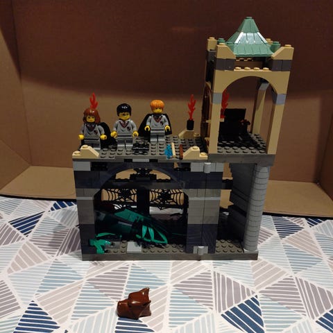LEGO Harry Potter Skytsvergen, inkluderer minifigurer og instruksjonshefte for montering.
