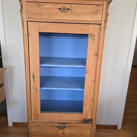 Antikkt veggskap laget av furu-tre med dør og 3stk innvendig hyller