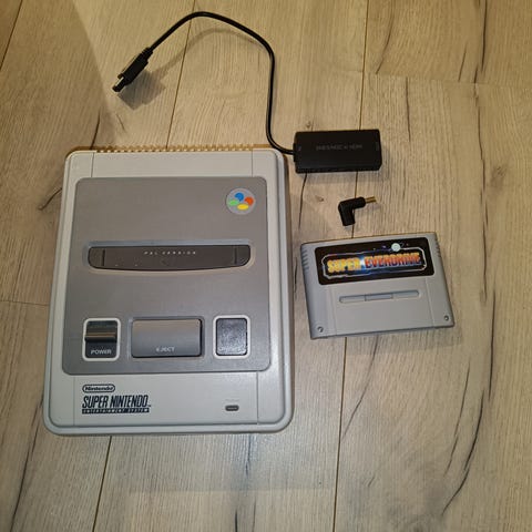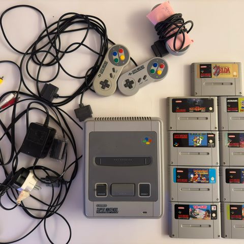 Super Nintendo + tilbehør i tilnærmet strøken tilstand selges.