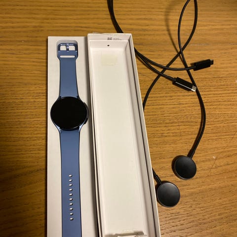 Samsung Galaxy Watch4 smartklokke med svart reim. Inkluderer ekstra reimer i forskjellige stiler. Smartklokken har en rund skjerm og tilbyr ulike funksjoner for helseovervåkning og varsler. /