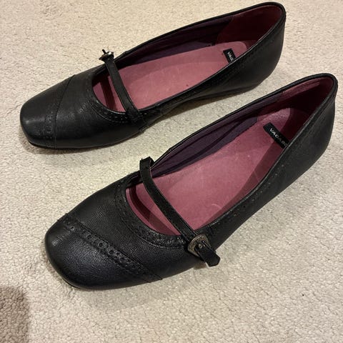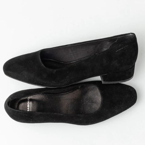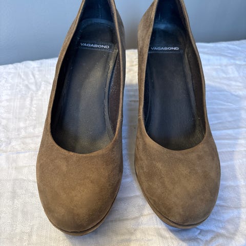 Vagabond pumps/ballerinasko med kilehæl i størrelse 40. Skoene er svarte og laget i skinn. Passer til daglig bruk og ulike anledninger.