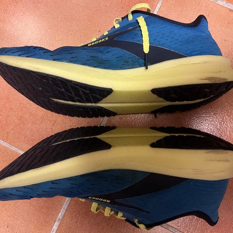 Brooks Hyperion løpesko i størrelse 44. Skoene er designet for løping og har en lett og pustende overdel. Sålen gir god demping og grep for løpeaktiviteter.
