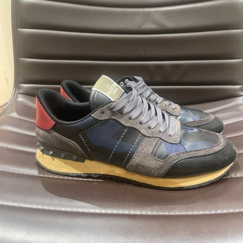 Selger et par Valentino Garavani Rockrunner sneakers i et ikonisk og tidløst design 👟🔥 Dette er en av Valentinos mest populære modeller, kjent for sin perfekte kombinasjon av luksus og sporty stil. Skoene er laget i en miks av semsket skinn, glatt skinn og tekstil, med det karakteristiske designet som gir et eksklusivt og moderne uttrykk 💎