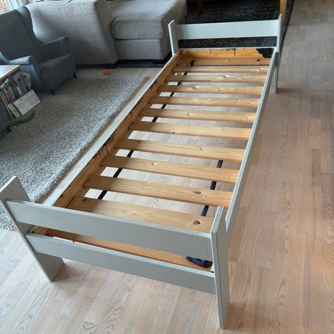 Den er godt brukt, men har mye bruk igjen som en gjesteseng, ekstraseng, hytteseng, etc. Den er anslagsvis ca. 10 år gammel).