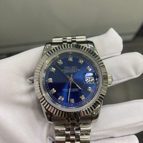 Selger en Seiko mod-klokke bygget med solide komponenter. Klokken har automatisk urverk og safirglass, og passer godt til daglig bruk eller som en del av en klokkesamling.