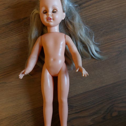 Den har blitt lekt med av et barn og har flere små skader som vises på bildene. Fortsatt masse lek igjen og ser fin ut som pynt. Kjøpt på 90-tallet.