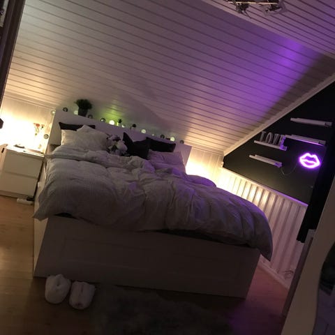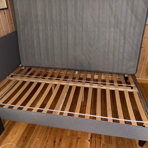 God madrass m overmadrass, lite brukt gjesteseng. Mye lagringsrom i to skap, to skuffer og åpen hylle.