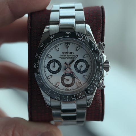 Selger en Seiko mod-klokke bygget med solide komponenter. Klokken har automatisk urverk og safirglass, og passer godt til daglig bruk eller som en del av en klokkesamling.