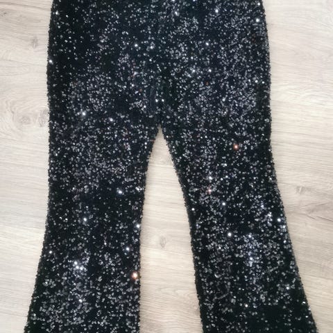 Helt ubrukt sett med paljetter selges. Bukse i størrelse XL med strikk i livet. Topp i størrelse L.