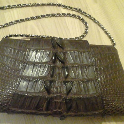 Meget pen veske i krokodilleskinn. Aldri blitt brukt. Selges etter opprydding.
