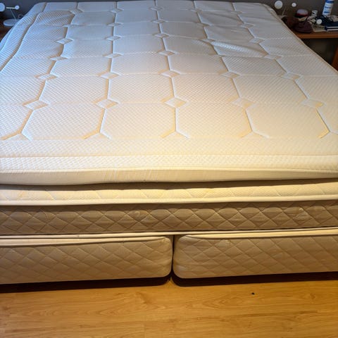 Den har en knekt planke under, men fungerer fint. Må hentes.