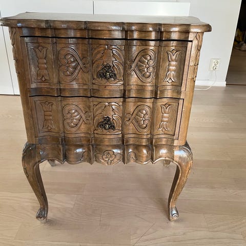 Massivt tre, solid bord, eik, antikt, barokk stil. sortbeiset tre.