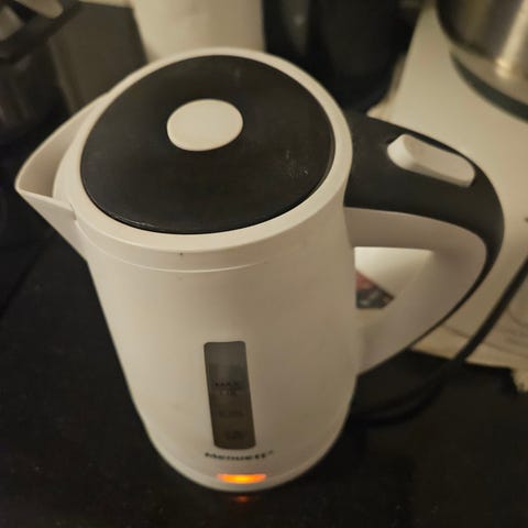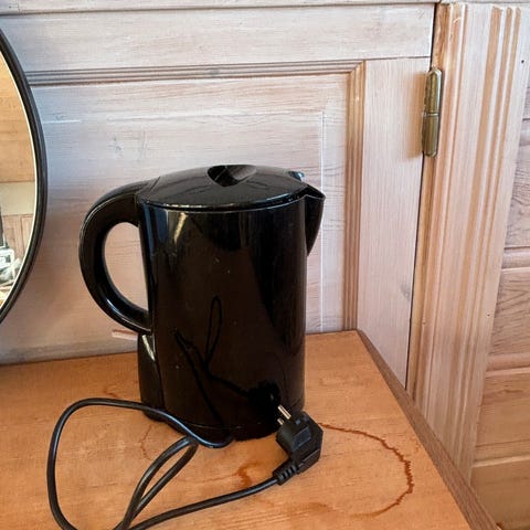 Pga jeg fikk nytt frokostsett til jul selger jeg nesten ubrukt vannkoker fra Rusta. Kjøpt ny rett før jul, kun brukt et par ganger. Veldig fint vannkoker som gjør seg på kjøkkenbenken. Ligner litt på smeg sin.