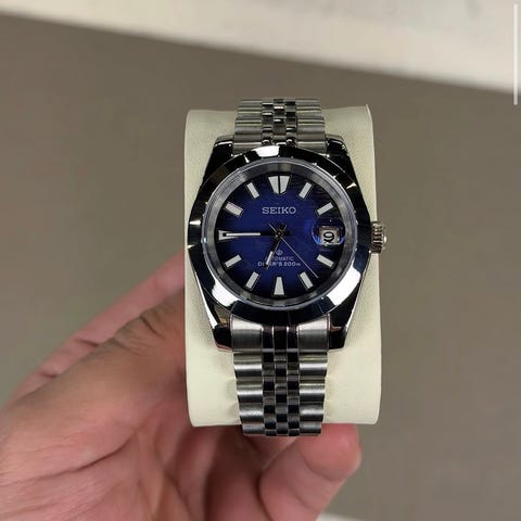 Selger en Seiko mod-klokke bygget med solide komponenter. Klokken har automatisk urverk og safirglass, og passer godt til daglig bruk eller som en del av en klokkesamling.