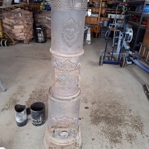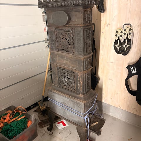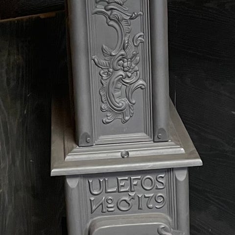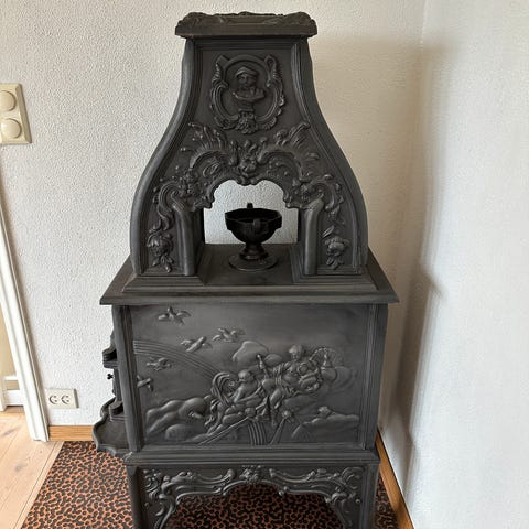 Veldig lite brukt peisovn fra Ulefoss. Alle originale detaljer med flere etasjer. Hver etasje har oppvarming for te / kaffe / mat.