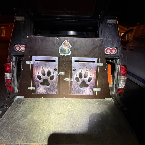 Transportbur laget av aluminium og plast, designet for å sikre trygg transport av kjæledyr. Buret har en dør med metallgitter, samt solide hjørnebeskyttere i plast. Passer for små til mellomstore dyr.