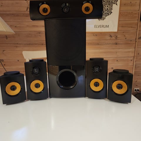 Logitech høyttalersystem med subwoofer og fjernkontroll