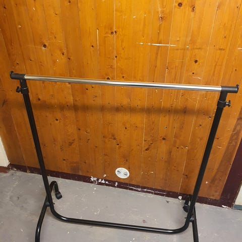 Klesstativ med fire hjul. Ingen mangler. Må hentes.