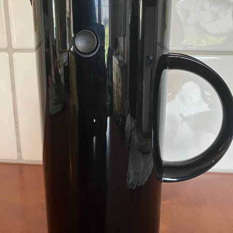 Stelton presskanne selges. Kannen har lokk med trykkmekanisme. Kannen er kanskje brukt to ganger. Kan sendes 5/1-26